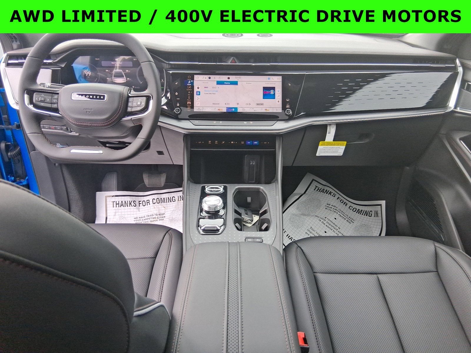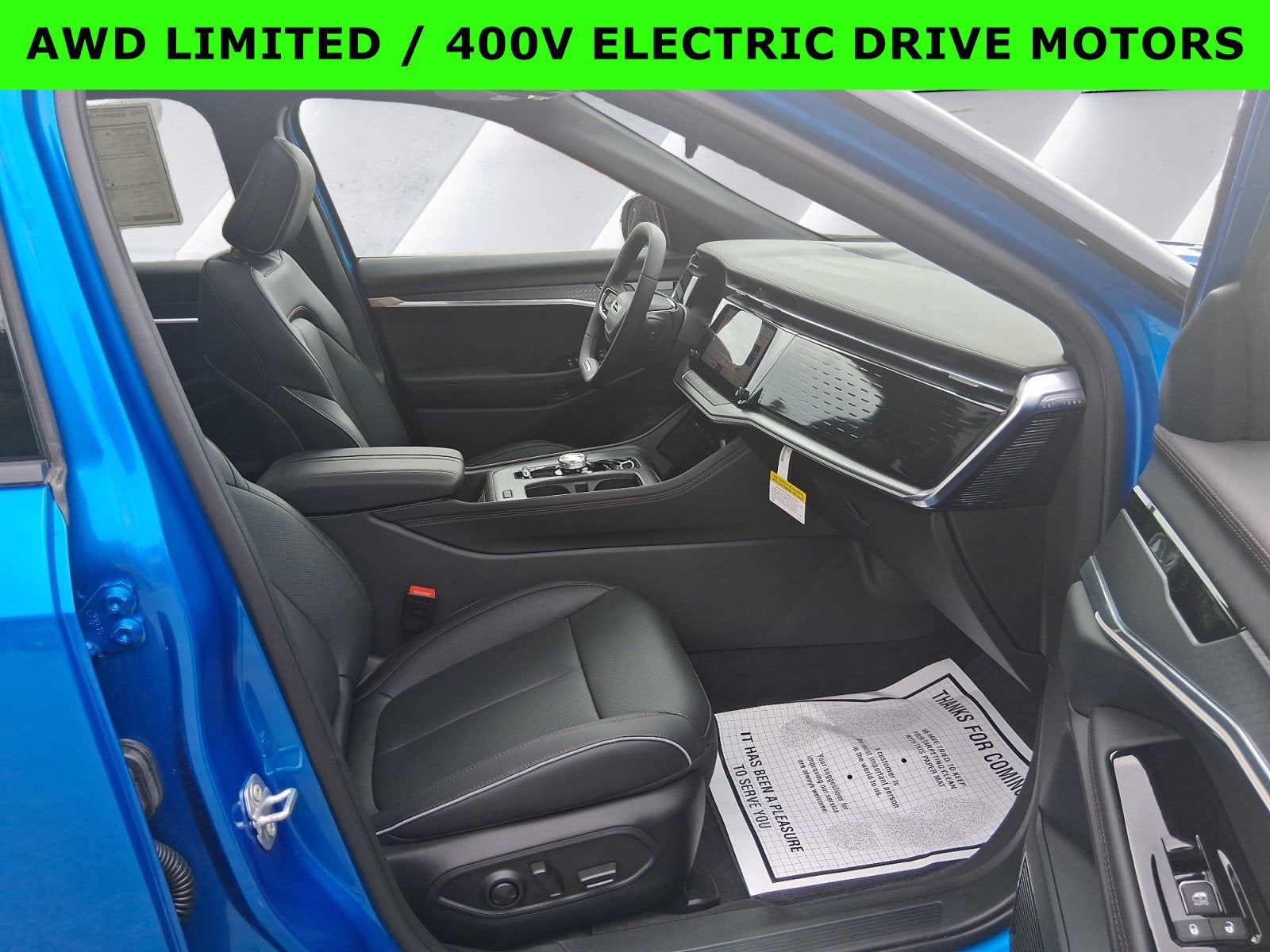 Featured Equipment: Wagoneer S Limited 400V 4XE, 4D Sport Utility, Electric Motor, 1-Speed Automatic, 4WD, Hydro Blue Pearlcoat, Global Black w/Neo Ultra Lux II Seats, 10 Speakers, Alloy wheels, AM/FM radio: SiriusXM with 360L, Apple CarPlay/Android Auto, Auto High-beam Headlights, Auto-dimming Rear-View mirror, Brake assist, Dark Appearance Package, Dark Daylight Opening Upper, Electronic Stability Control, Front Bucket Seats, Front dual zone A/C, Front fog lights, Fully automatic headlights, Heated front seats, Heated steering wheel, Navigation System, Neo Ultra Lux II Seats, Panic alarm, ParkView Rear Back-Up Camera, Power driver seat, Power Liftgate, Power moonroof, Power passenger seat, Power windows, Premium audio system: UConnect 5, Quick Order Package 25D, Radio: Uconnect 5 Nav w/12.3 Display, Rain sensing wipers, Rear dual zone A/C, Security system, Speed-Sensitive Wipers, Titanium Exterior Accents, Titanium Rear Fascia Applique, Titanium Upper Grille Applique, Two Tone Paint Group, Wheels: 20 x 8.5 Painted Diamond Aluminum Design 1.