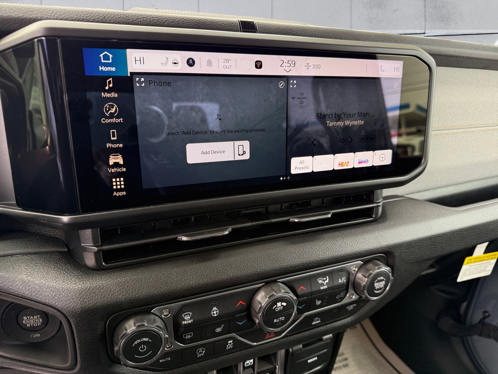 4.10 Rear Axle Ratio, 8 Speakers, Advanced Brake Assist, Air Conditioning with Auto Temp Control, Anti-Spin Differential Rear Axle, Automatic Headlamps, Auxiliary Switches, Black Molded-in-Color Fender Flares (2-Piece), Class IV Receiver Hitch, Cluster 7.0 TFT Color Display, Convenience Group, Conventional Differential Front Axle, Corning Gorilla Glass, Dana M210 Wide Front Axle, Dana M220 Wide Rear Axle, Daytime Running Lamp System, Daytime Running Lamps LED Accents, Deep Tint Sunscreen Windows, Emergency/Assistance Call, Front Door Locks 2-Door Passive Entry, Front LED Fog Lamps, Full Speed Forward Collision Warning Plus, Heated Front Seats, Heated Steering Wheel, Heavy-Duty Engine Cooling, LED Headlamp and Fog Lamp Group, LED Premium Reflector Headlamps, Max Tow Package with 4.10 Axle Ratio, Normal Duty Plus Suspension, Power Heated Mirrors, Premium Wrapped Steering Wheel, Quick Order Package 24S Sport S, Radio: Uconnect 5 with 12.3 Display, Remote Start System, Security Alarm, Sun Visors with Illuminated Vanity Mirrors, Trailer Hitch Zoom, Trailer Tow and Auxiliary Switch Group, Universal Garage Door Opener, Wheels: 17 x 7.5 Gray.