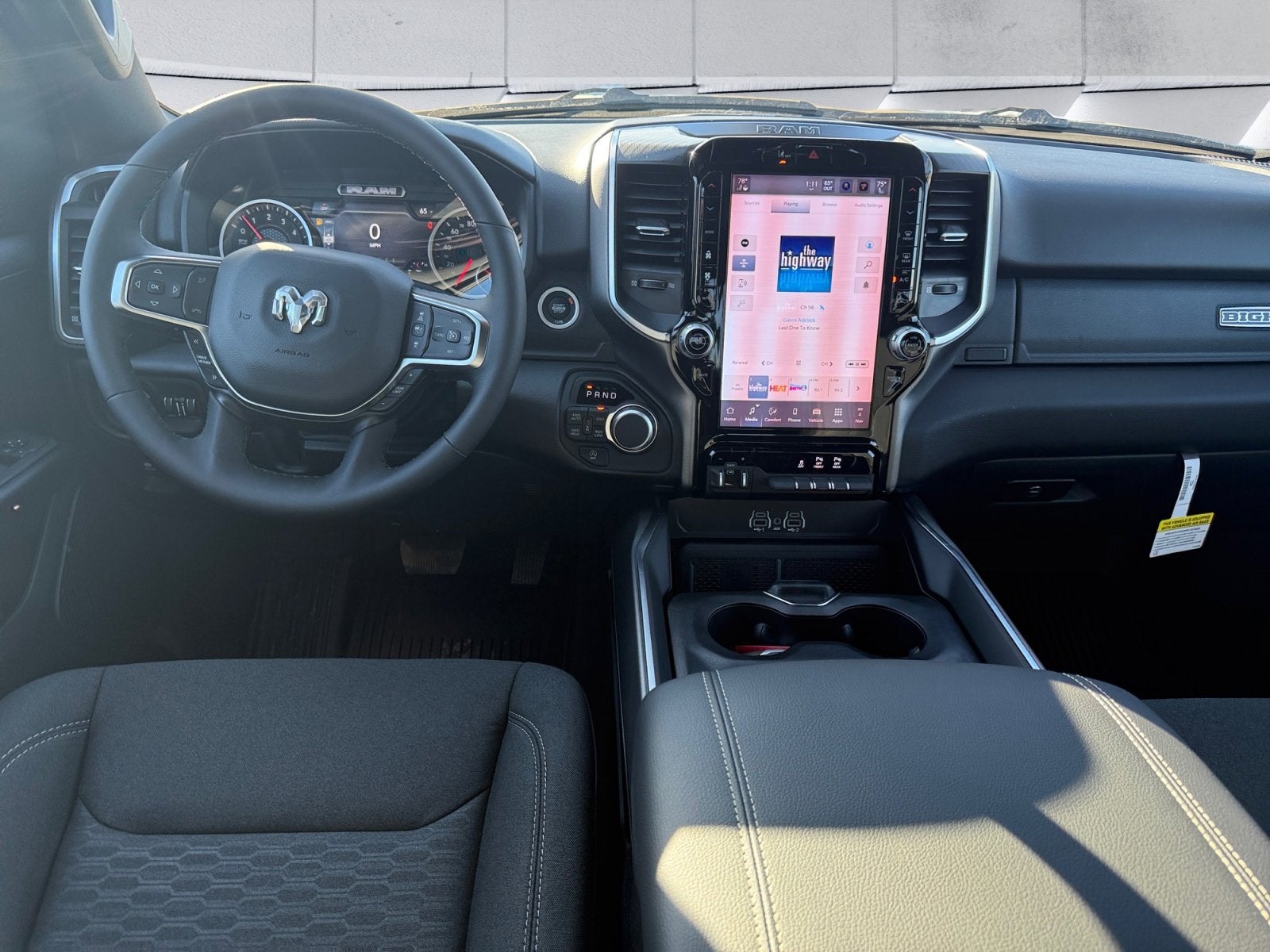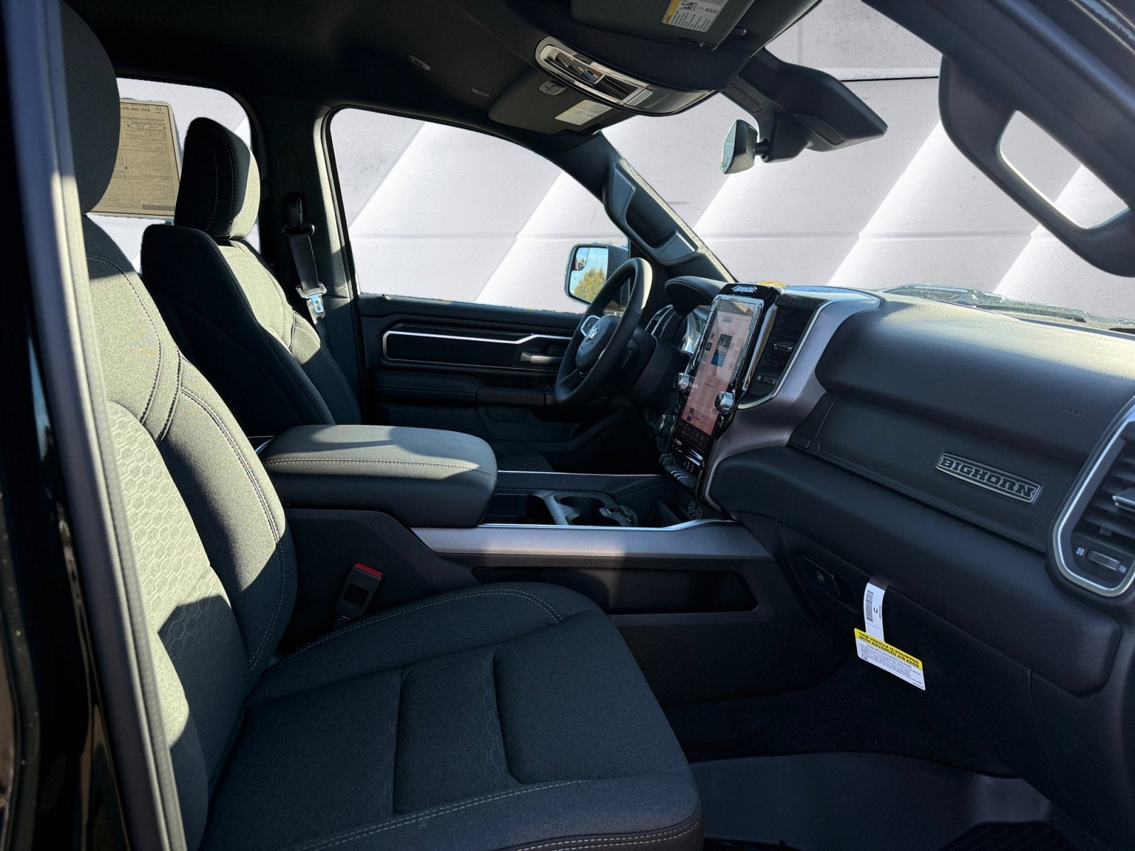 115V Auxiliary Power Outlet, 115V Auxiliary Rear Power Outlet, 12 Touchscreen Display, 3 Rear Seat Head Restraints, 4 Way Front Headrests, 400W Inverter, 4G LTE Wi-Fi Hot Spot, Accent Color Door Handles, Accent Color Premium Power Mirrors, Accent Color Tailgate Handle, Anti-Spin Differential Rear Axle, Apple CarPlay, Auto Power-Folding Mirrors, Auto-Dimming Exterior Driver Mirror, Auto-Dimming Rear-View Mirror, Big Horn Level 2 Equipment Group, Black Exterior Mirrors, Black Exterior Truck Badging, Black Headlamp Bezels, Black Interior Accents, Black Painted Exterior Mirrors Caps, Black Premium Power Mirrors, Black Tail Lamp Bezels, Body Color Fender Flares, Body Color Front Bumper, Bucket Seats, Center Console Parts Module, Cluster 7.0 TFT Color Display, Configurable Drive Mode, Connectivity - US/Canada, Convex Wide-Angle Exterior Mirror Insert, Deluxe Cloth Bucket Seats, Disassociated Touchscreen Display, Exterior Mirrors Courtesy Lamps, Front Seat Back Map Pockets, Full Length Floor Console, Glove Box Lamp, Google Android Auto, GPS Antenna Input, GPS Navigation, Grille Black Surround Black Mesh, HD Radio, Heated Front Seats, Heated Steering Wheel, Integrated Center Stack Radio, Leather Wrapped Steering Wheel, LED Footwell Lighting, Manual Adjust 4-Way Front Passenger Seat, Night Edition, Overhead LED Lamps, Power 2-Way Driver Lumbar Adjust, Power Adjust 8-Way Driver Seat, Power Adjustable Pedals, Premium Overhead Console, Quick Order Package 27Z Big Horn, RAM Grille Badge - Black, Rear 60/40 Folding Seat, Rear Center Armrest, Rear Power Sliding Window, Rear Window Defroster, Remote Tailgate Release, Security Alarm, SiriusXM Radio Service, Steering Wheel Mounted Audio Controls, Universal Garage Door Opener, USB Host Flip, Wheels: 20 x 9.0 Aluminum Painted Clad.