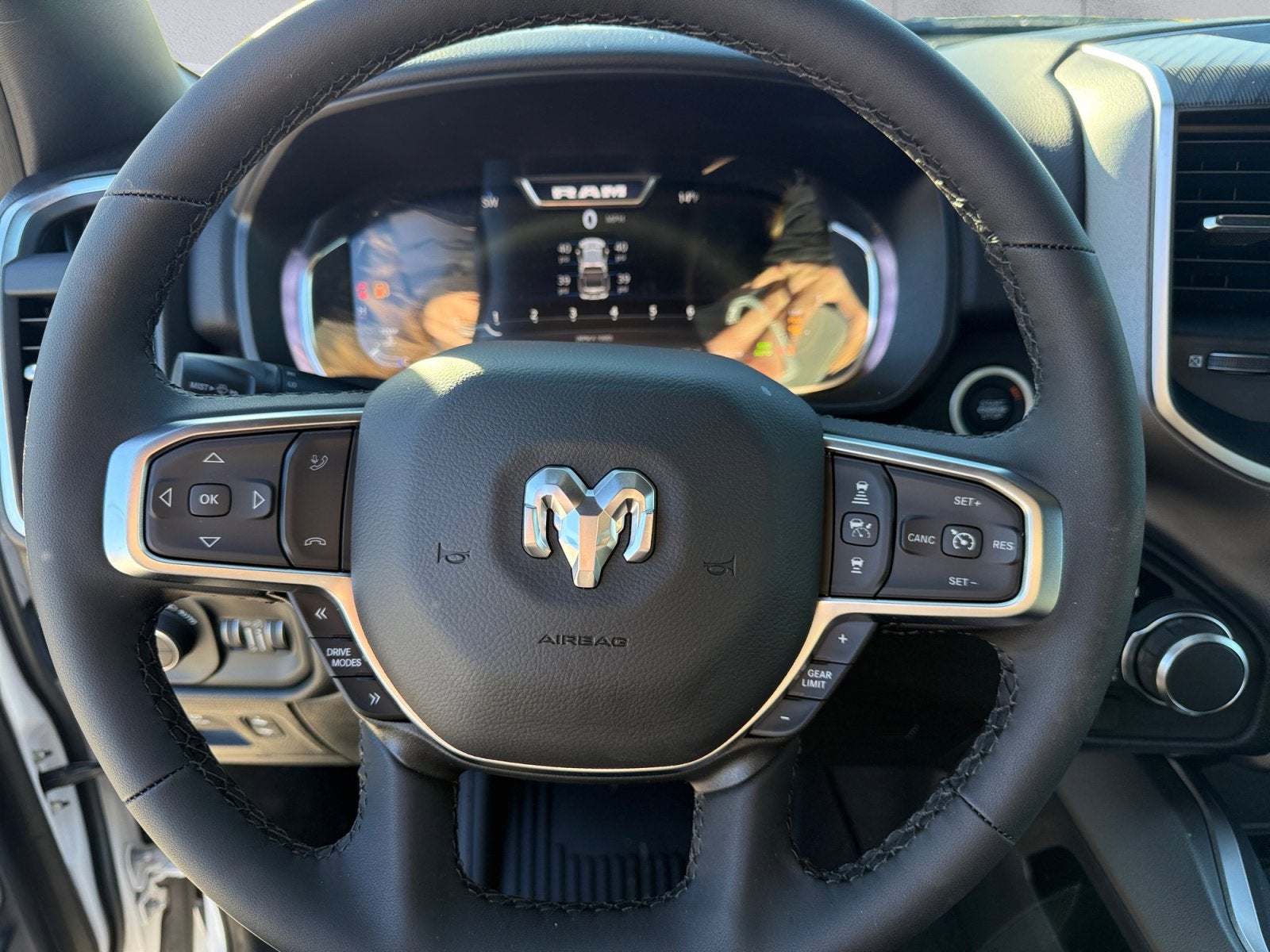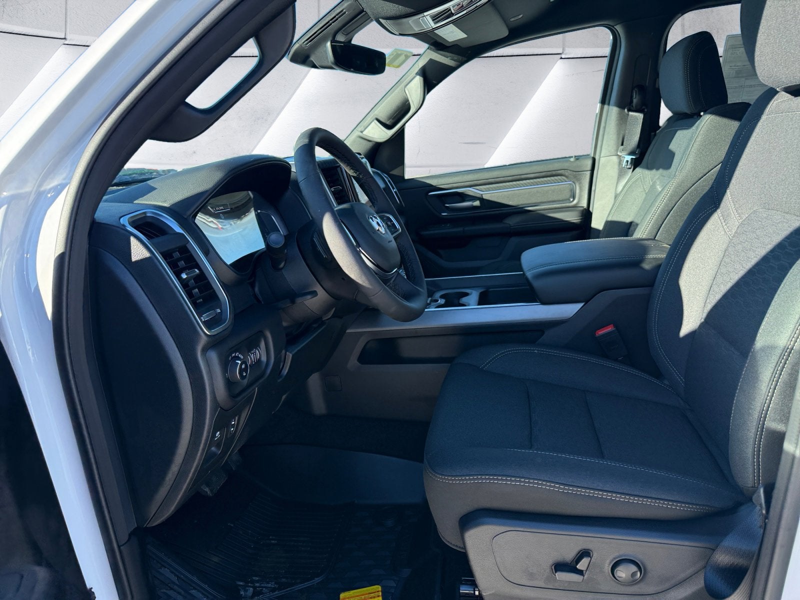 115V Auxiliary Power Outlet, 115V Auxiliary Rear Power Outlet, 12 Touchscreen Display, 2nd Row in Floor Storage Bins, 3 Rear Seat Head Restraints, 4 Way Front Headrests, 400W Inverter, 4G LTE Wi-Fi Hot Spot, 9 Amplified Speakers with Subwoofer, Accent Color Door Handles, Accent Color Premium Power Mirrors, Accent Color Tailgate Handle, Air Conditioning ATC with Dual Zone Control, Anti-Spin Differential Rear Axle, Apple CarPlay, Auto Power-Folding Mirrors, Auto-Dimming Exterior Driver Mirror, Auto-Dimming Rear-View Mirror, Big Horn Level 2 Equipment Group, Black Exterior Mirrors, Black Exterior Truck Badging, Black Headlamp Bezels, Black Interior Accents, Black Painted Exterior Mirrors Caps, Black Premium Power Mirrors, Black Tail Lamp Bezels, Body Color Fender Flares, Body Color Front Bumper, Body Color Rear Bumper with Step Pads, Bucket Seats, Center Console Parts Module, Cluster 7.0 TFT Color Display, Configurable Drive Mode, Connected Travel and Traffic Services, Connectivity - US/Canada, Convex Wide-Angle Exterior Mirror Insert, Deluxe Cloth Bucket Seats, Disassociated Touchscreen Display, Dual Exhaust with Black Tips, Exterior Mirrors Courtesy Lamps, Exterior Mirrors with Heating Element, Exterior Mirrors with Supplemental Signals, Front Seat Back Map Pockets, Full Length Floor Console, Global Telematics Box Module, Glove Box Lamp, Google Android Auto, GPS Antenna Input, GPS Navigation, Grille Black Surround Black Mesh, HD Radio, Heated Front Seats, Heated Steering Wheel, Integrated Center Stack Radio, Integrated Voice Command with Bluetooth®, Leather Wrapped Steering Wheel, LED Dome Lamp with on/Off Switch, LED Footwell Lighting, Manual Adjust 4-Way Front Passenger Seat, Media Hub with 2 Charge Only USBs, Night Edition, Overhead LED Lamps, Power 2-Way Driver Lumbar Adjust, Power Adjust 8-Way Driver Seat, Power Adjustable Pedals, Premium Overhead Console, Quick Order Package 27Z Big Horn, Radio: Uconnect 5 Navigation with 12.0 Display, RAM Grille Badge - Black, Rear 60/40 Folding Seat, Rear Center Armrest, Rear Power Sliding Window, Rear Window Defroster, Remote Tailgate Release, Security Alarm, SiriusXM Radio Service, SiriusXM with 360L, Steering Wheel Mounted Audio Controls, Sun Visors with Illuminated Vanity Mirrors, Universal Garage Door Opener, USB Host Flip, Wheels: 20 x 9.0 Aluminum Painted Clad, Wheels: 20 x 9 Aluminum Chrome Clad.