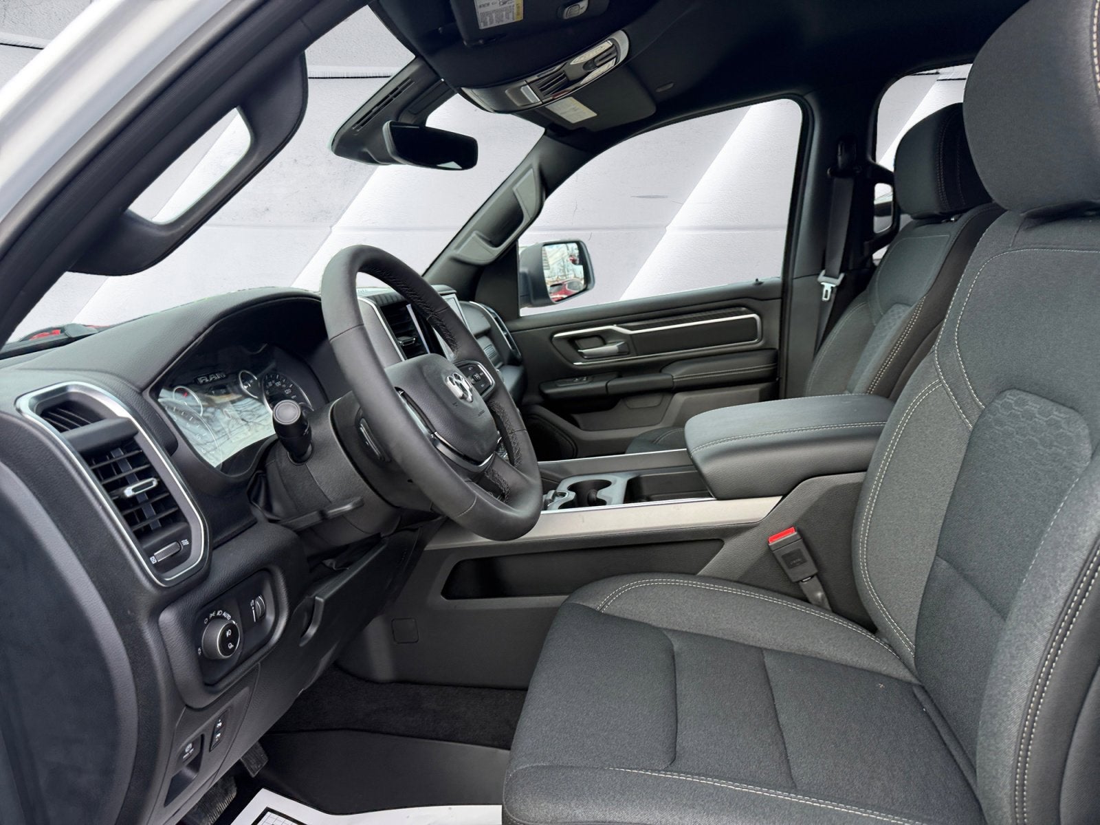 115V Auxiliary Power Outlet, 2nd Row in Floor Storage Bins, 3 Rear Seat Head Restraints, 4 Way Front Headrests, 400W Inverter, 6 Speakers, Auto High-beam Headlights, Auto Power-Folding Mirrors, Auto-Dimming Exterior Driver Mirror, Auto-Dimming Rear-View Mirror, Big Horn Level 1 Equipment Group, Black Exterior Mirrors, Black Interior Accents, Black Premium Power Mirrors, Body Color Door Handles, Body Color Fender Flares, Body Color Front Bumper, Body Color Rear Bumper with Step Pads, Body Color Tailgate Handle, Bucket Seats, Center Console Parts Module, Convex Wide-Angle Exterior Mirror Insert, Deluxe Cloth Bucket Seats, Exterior Mirrors Courtesy Lamps, Exterior Mirrors with Heating Element, Exterior Mirrors with Supplemental Signals, Front Seat Back Map Pockets, Full Length Floor Console, Glove Box Lamp, Grille Surround 1 Body Color Texture 1 Black, Heated Front Seats, Heated Steering Wheel, Leather Wrapped Steering Wheel, Manual Adjust 4-Way Front Passenger Seat, Power 2-Way Driver Lumbar Adjust, Power Adjust 8-Way Driver Seat, Power Adjustable Pedals, Quick Order Package 23Z Big Horn, RAM Grille Badge - Chrome, Rear 60/40 Folding Seat, Rear Center Armrest, Rear Dome with on/Off Switch Lamp, Rear Power Sliding Window, Rear Window Defroster, SiriusXM Radio Service, SiriusXM Satellite Radio, Sport Appearance Package, Steering Wheel Mounted Audio Controls, Sun Visors with Illuminated Vanity Mirrors, Universal Garage Door Opener.