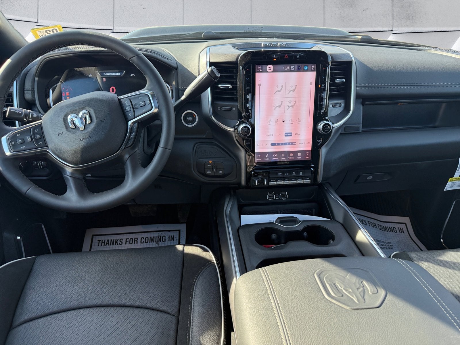 #1 Seat Foam Cushion, 10 Speakers, 115V Auxiliary Rear Power Outlet, 2 Way Rear Headrest Seat, 2nd Row in Floor Storage Bins, 4 Way Front Headrests, Active Lane Management System, Adaptive Steering System, Anti-Spin Differential Rear Axle, Auto Adjust in Reverse Exterior Mirrors, Auto Dim Exterior Mirror, Auto High Beam Headlamp Control, Auto Power-Folding Mirrors, Auto-Dimming Exterior Passenger Mirror, Black Exterior Mirrors, Black Exterior Truck Badging, Black Wheel Center Hub, Body Color Grille-Surround, Bucket Seats, Center Stop Lamp with Cargo View Camera, Chrome Exterior Mirrors, Cold Weather Group, Drowsy Driver Detection, Dual Wireless Charging Pad, Engine Block Heater, Exterior Mirrors Courtesy Lamps, Exterior Mirrors with Heating Element, Exterior Mirrors with Memory, Exterior Mirrors with Supplemental Signals, Foam Bottle Insert (door Trim Panel), Folding Flat Load Floor Storage, Forward and Reverse Utility Lights, Front Seat Back Map Pockets, Full Length Upgraded Floor Console, Gloss Black Grille Billets/Accents, GPS Navigation, Heated Front Seats, Heated Steering Wheel, High Back Seats, Laramie Level 1 Plus Equipment Group, Leather Trimmed Bucket Seats, LED Bed Lighting, Mirror Running Lights, MOPAR Deployable Bed Step, MOPAR Spray in Bedliner, MOPAR Winter Front Grille Cover, Navigation System, Night Edition, Power 2-Way Driver Lumbar Adjust, Power 2-Way Passenger Lumbar Adjust, Power Adjust 8-Way Driver Seat, Power Adjust 8-Way Front Passenger Seat, Power Adjust Mirrors, Power Adjustable Pedals with Memory, Power Heated Fold Telescopic Mirrors with Memory, Power Sunroof, Power Telescoping Mirrors, Power-Adjustable Convex Aux Mirrors, Quick Order Package 24H Laramie, Radio: Uconnect 5 Navigation with 12.0 Display, Radio/Driver Seat/Mirrors/Pedals Memory, Rain Sensitive Windshield Wipers, Rear 60/40 Folding Seat, Remote Tailgate Release, Sport Performance Hood, Traffic Sign Recognition, Ventilated Front Seats, Wheels: 20 x 8.0 Black Painted Aluminum.